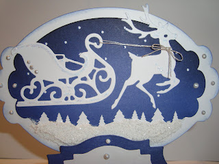 Die Stanzform der Staffelei ist von Tim Holtz "Small Easel". Es empfiehlt sich einen stärkeren Karton zu verwenden, da bei dünnerem die Gefahr besteht, dass die Faltkanten brechen. Die übrigen Stanszformen sind von Spellbinders und Schlitten & Rentier Creatables von Marianne Design.