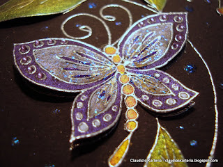 | Stempel: Artful Stamper - Spring Butterfly (CM1230U) & Whiff of Joy - ein kleiner Gruss (T280) Deko: Miga Gloss/Mica Magic, Glitzergel, Strassteine & 3D-Abstandspads |